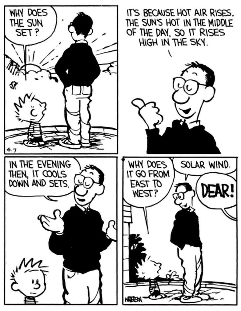 Put on the spot, I don’t think I did a great job articulating my response. I obviously answered no, but the very apparent follow up questions were difficult to address. If you asked Tristan, he would likely say he had no idea what I was trying to say. It probably resembled something similar to this conversation between Calvin and his father…
